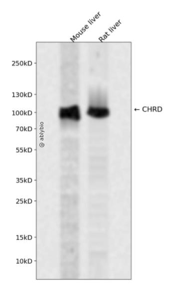 Western blot analysis of CHRD expressed in Mouse liver,Rat liver using CHRD Rabbit pAb at 1:1000. Secondary antibody: HRP Goat Anti-Rabbit IgG (H+L) at 1:5000. Lysates/proteins: 30ug per lane. Blocking buffer: 5% non-fat dry milk in TBST. Detection: ECL Enhanced Kit. Exposure time: 120s.